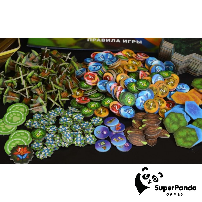 1. Выбор животного и подготовка поля: каждый игрок получает уникальное животное с особой способностью, размещает стартовые тайлы местности и получает начальные ресурсы.