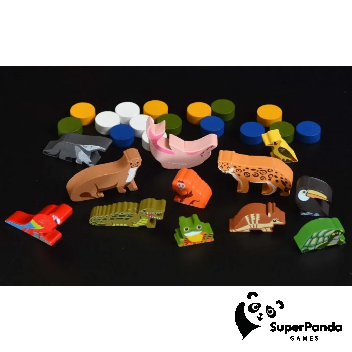 Красочные деревянные фигурки, объёмные лодки для сбора жетонов и детализированное игровое поле создают полное погружение в атмосферу Амазонии. Игра предлагает разнообразие целей, способов подсчёта очков и более 60 000 комбинаций карт животных, а также 9 уникальных сценариев для одиночной игры и ускоренный режим для новичков.