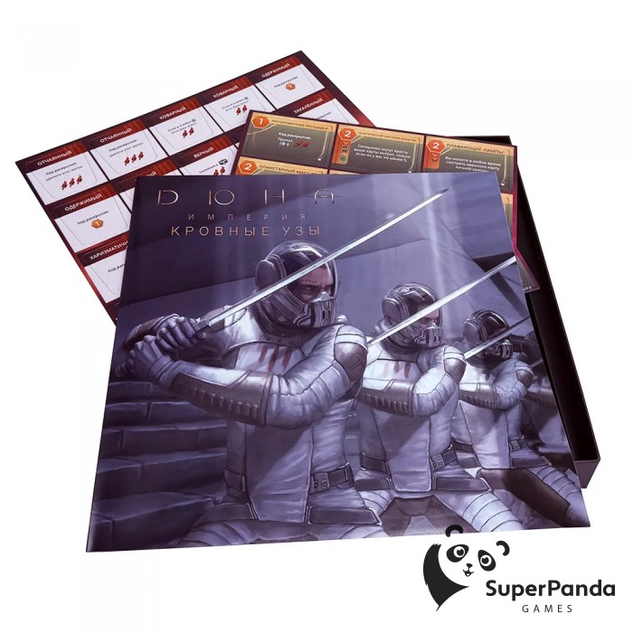 "Дюна. Империя. Кровные узы" - это масштабное дополнение к стратегической настольной игре, которое углубляет механику власти, интриг и военных конфликтов на Арракисе. Вас ждут новые типы войск, свежие символы действий и мини-дополнение "Технологии", расширяющее возможности игроков.