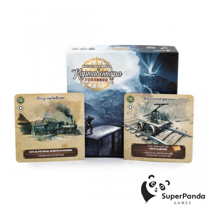 "Картавентура Голливуд" - настольная повествовательная игра из серии «Картавентура», переносит игроков в атмосферу США 1920-х годов. Вы играете за Джима Талли, рабочего с заветной мечтой попасть в мир кино. Оставьте привычную жизнь позади, пересекайте страну с поезда на поезд и попытайтесь встретить самого известного бродягу - Чарли Чаплина!