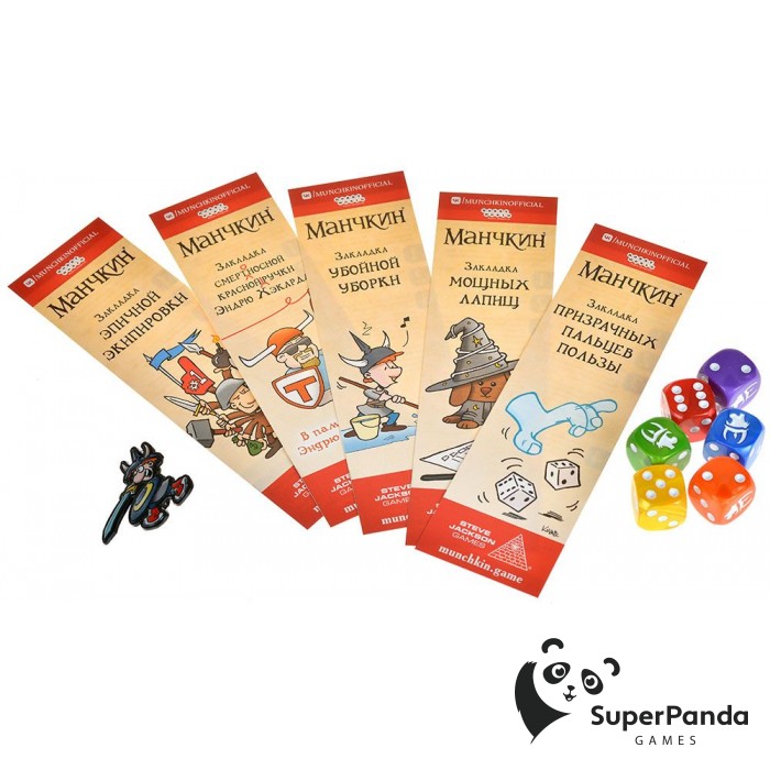 - 90 карт из наборов: "Вампирский манчкин", "Пиратский манчкин", "Манчкин: Ктулху", "Манчкин: Апокалипсис", "Суперманчкин" и др.