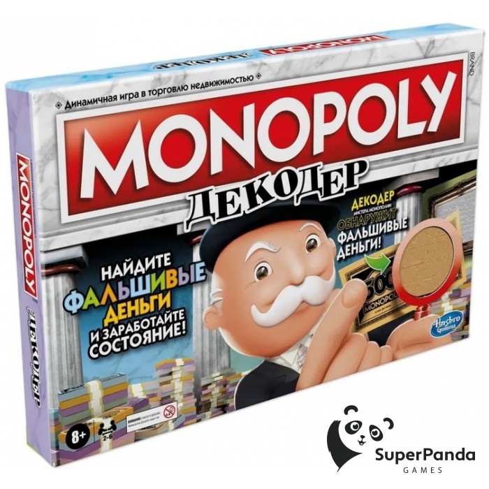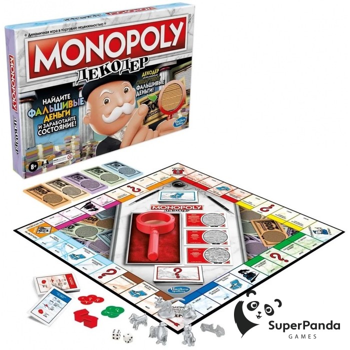"Монополия: Декодер" – новая часть популярной серии настольных игр, которая вносит свежие элементы в классический игровой процесс. Теперь сделки нужно заключать с большей осторожностью, ведь среди денег и карточек "Шанс" могут попасться фальшивки. Однако, вам не стоит беспокоиться, ведь у вас есть декодер, который поможет выявить подделки!