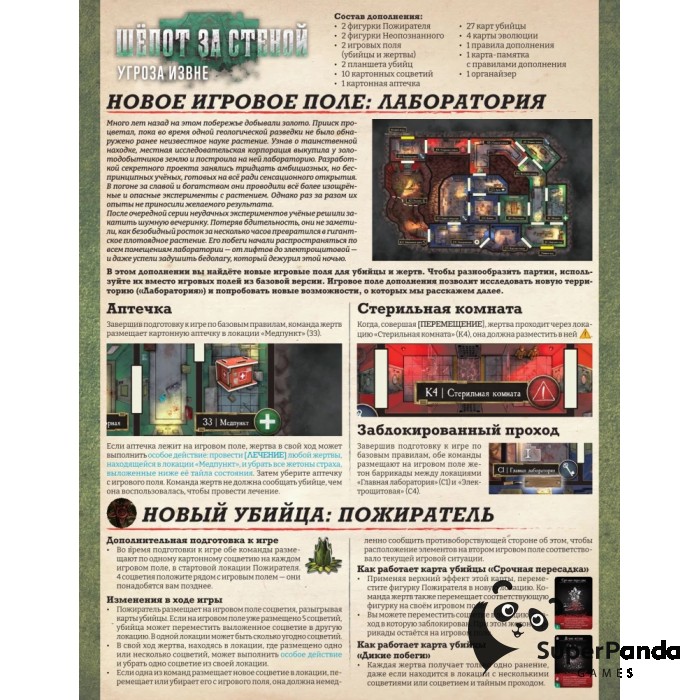 - 1 игровое поле жертвы с картой "Лаборатория"